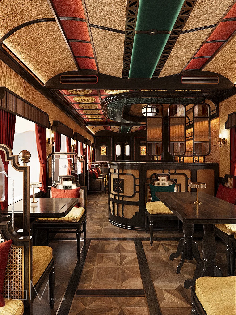 The train’s design is based on the classic Indochine style. It uses natural materials like wood, bamboo, and rattan to show the charm of old Vietnam. The warm and carefully made interiors create a peaceful and friendly space.