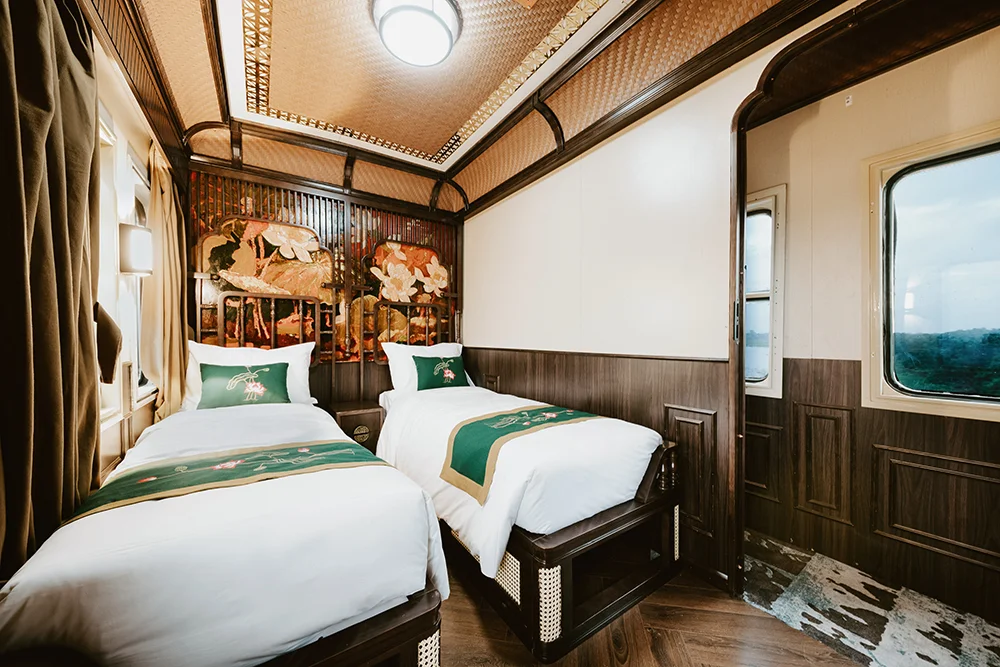 The train features cosy cabins styled with a touch of 1930s Indochine charm, blending old-world design with modern comfort. You’ll enjoy tasty meals in two lovely dining areas, with round-the-clock service to make your journey even smoother. SJourney is a great choice for those looking to explore Vietnam in comfort and style.