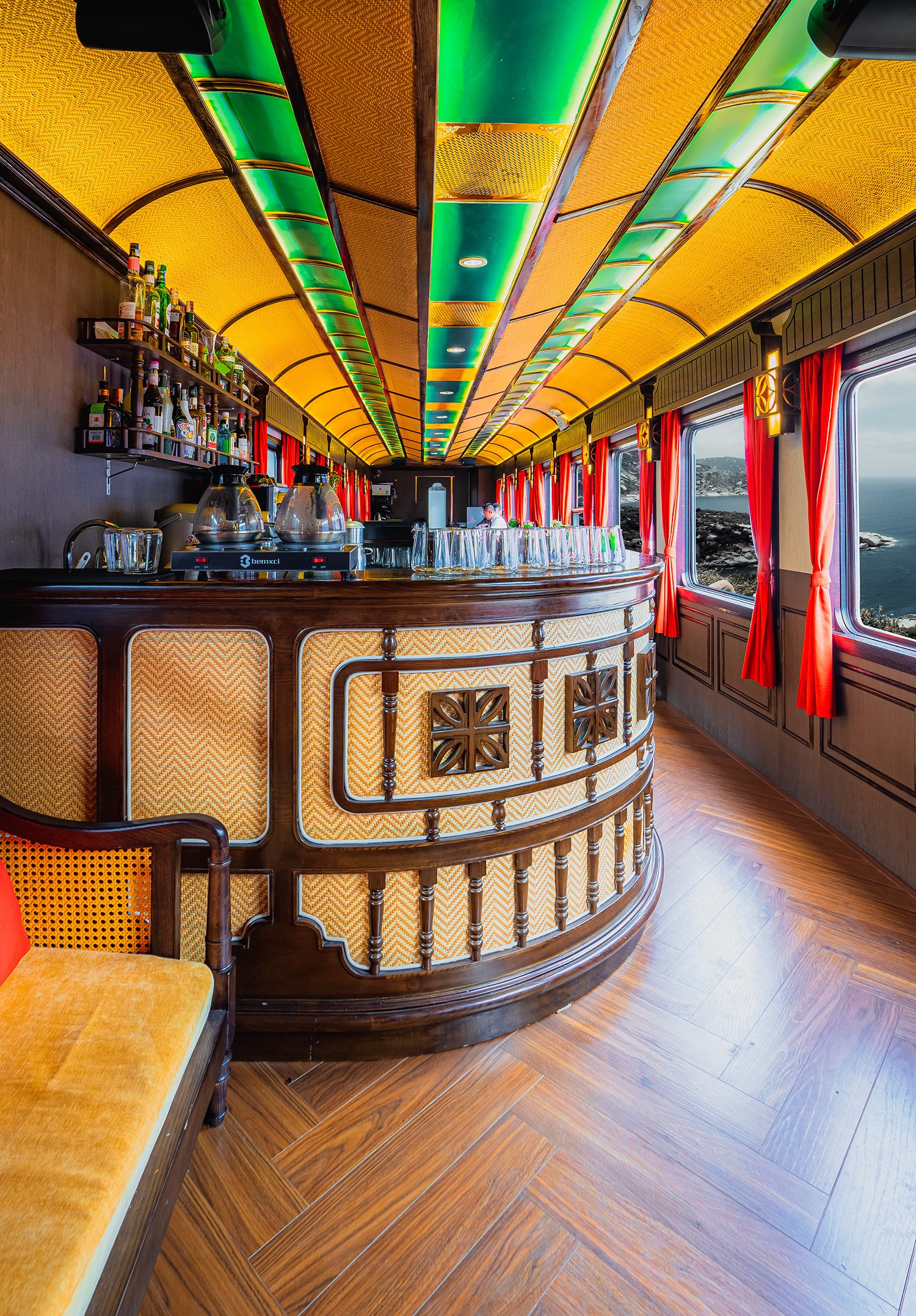 The SJourney train comprises 13 cars in total, featuring 10 sleeping cars and 2 bistro cars. It accommodates up to 60 passengers per trip. The design and atmosphere draw inspiration from the Indochine style, reflecting the elegance of the 1930s—a time when trains like the Trans-Indochina linked various regions of Southeast Asia. This aesthetic blends a nostalgic charm with modern luxury, aiming to bring back the romantic essence of vintage travel while offering contemporary comfort.