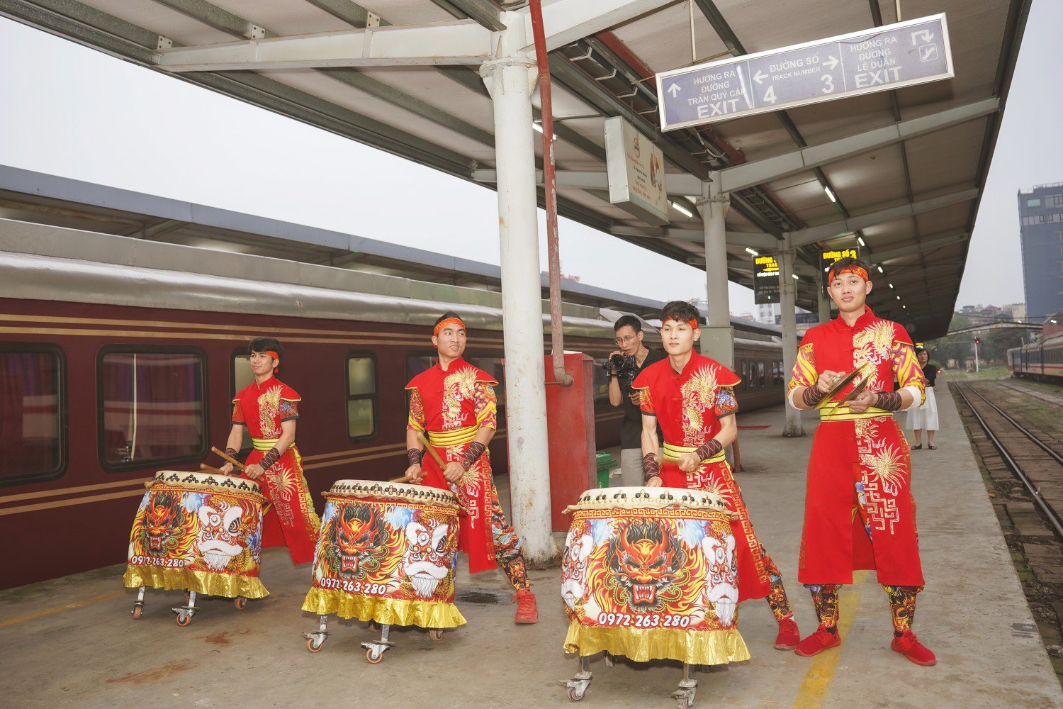 The afternoon invites quiet reflection as the train traverses landscapes of rice paddies, rolling hills, and the tranquil Red River. As dusk falls, the train pauses at a small local station for an intimate cultural performance by local artists, showcasing authentic music and dance of Northern Vietnam.