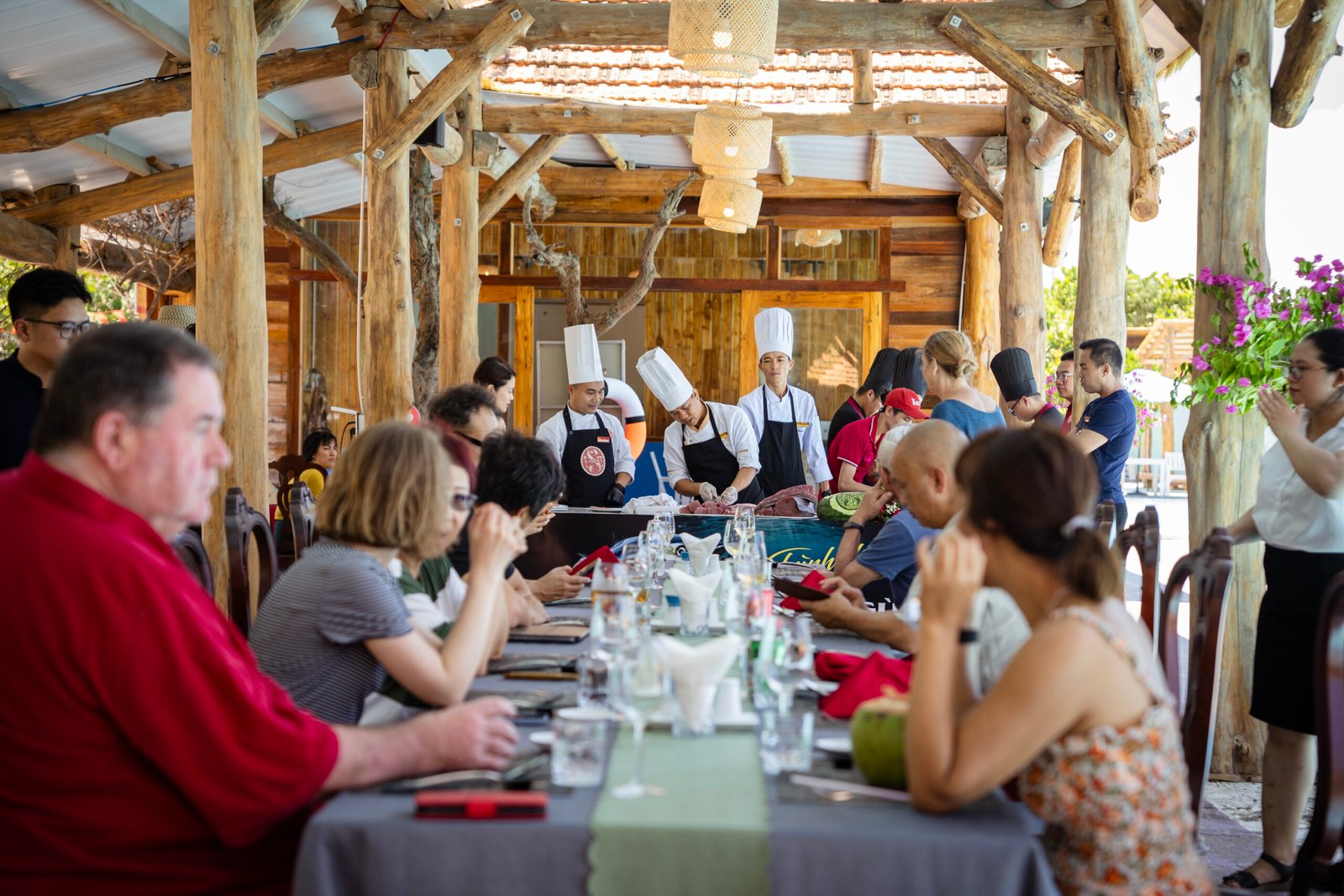 Each course is crafted to complement the day’s experiences — elegant yet unpretentious, much like Phu Yen itself. Outside, the world passes by in a quiet blur; inside, the evening unfolds with the warmth of new friendships and the lingering sweetness of a day spent close to the heart of Vietnam.